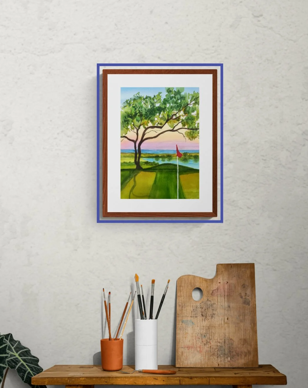 One of a kind original vertical 12 X 16 watercolor with arctic white mat. Artwork size 9 X 12