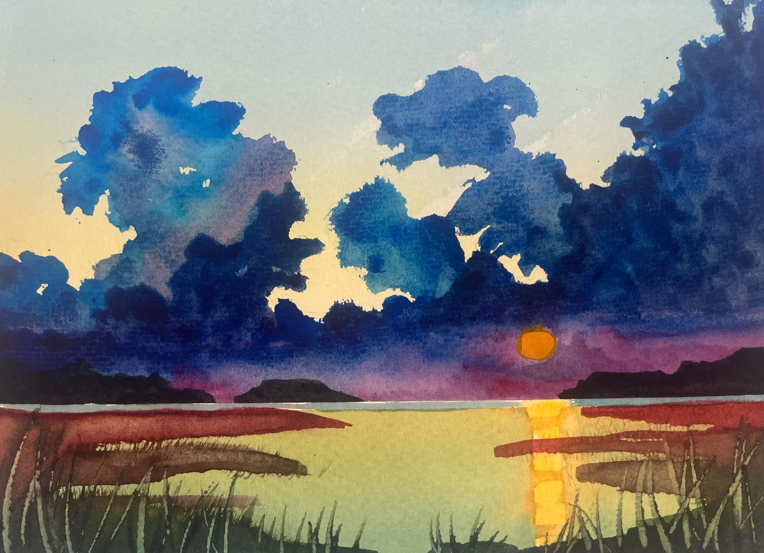 One of a kind original horizontal 11 X 14 watercolor with arctic white mat (no frame). Artwork size 8 X 10